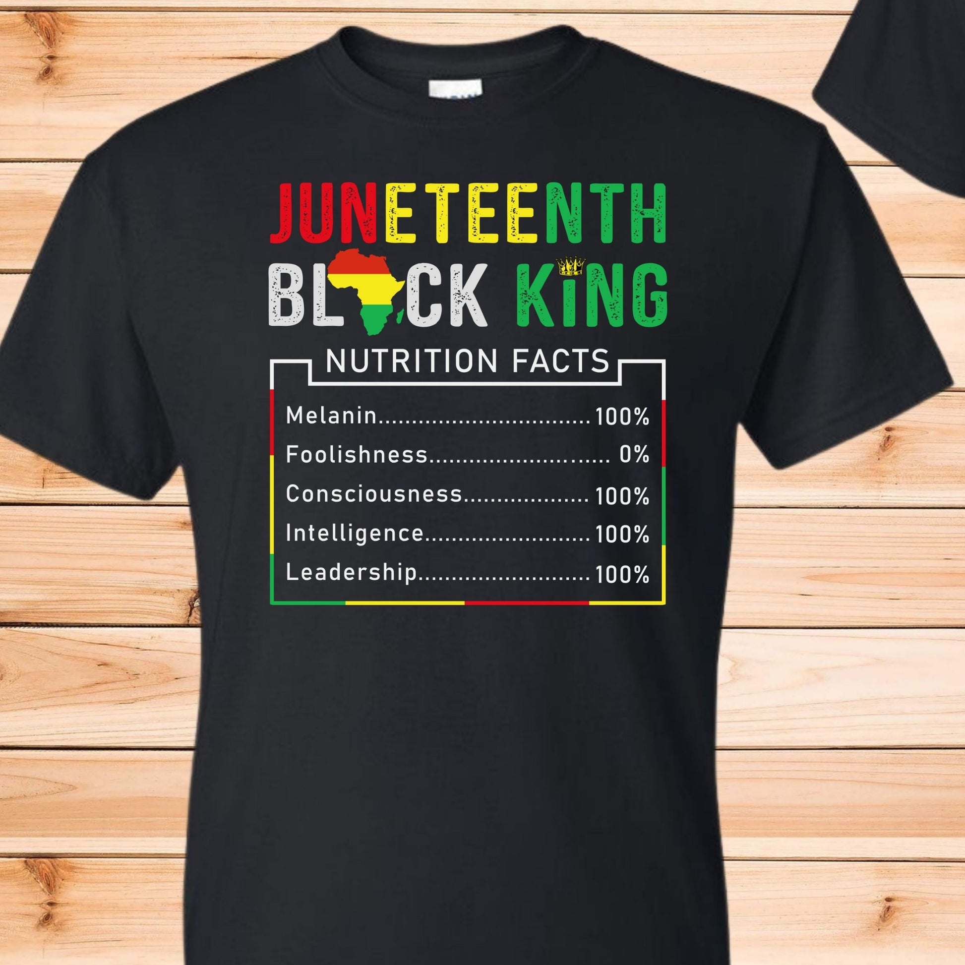 Celebrate Juneteenth with our Black King tshirt. Show your pride and support for the holiday that commemorates the end of slavery in the United States. Wear it proudly and spread awareness with this iconic design. Available now.