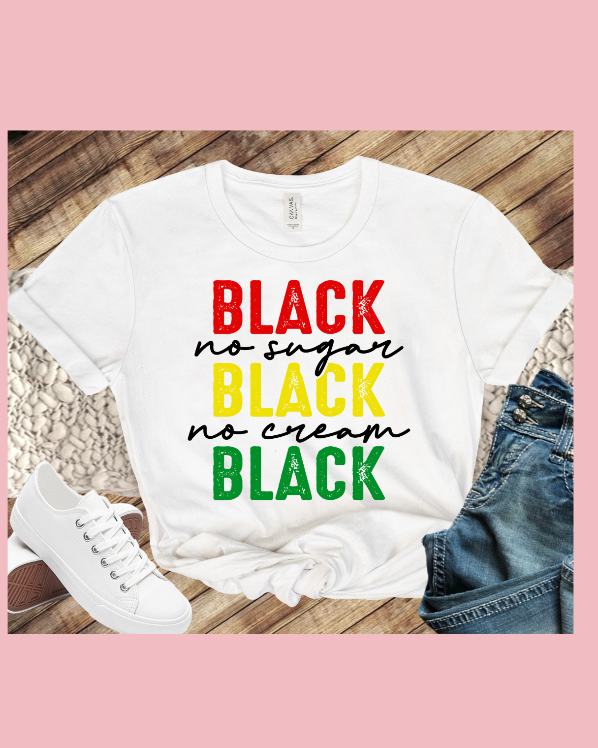 Celebrate Juneteenth with the "Hold the Cream and Sugar" shirt, a bold and catchy tribute to Black pride and authenticity. This design embraces natural beauty and strength, making it a perfect way to honor freedom and heritage. Comfortable and stylish, it’s ideal for showing support and sparking meaningful conversations.
